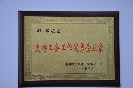 今年,開發(fā)區(qū)“支持工會工作優(yōu)秀企業(yè)家”評選工作盛況空前,候選人之間競爭激烈。我公司工會委員會申報的候選人、公司總經(jīng)理鄭輝,憑借其對工會工作細致認真的鼎力支持,最終得到了區(qū)總工會的高度認可,成為“支持工會工作優(yōu)秀企業(yè)家” 榮譽稱號八位獲得者之一,也是唯一的一位女性企業(yè)家。在此,我們?nèi)w三圣人都應(yīng)該向她表示由衷的祝賀!