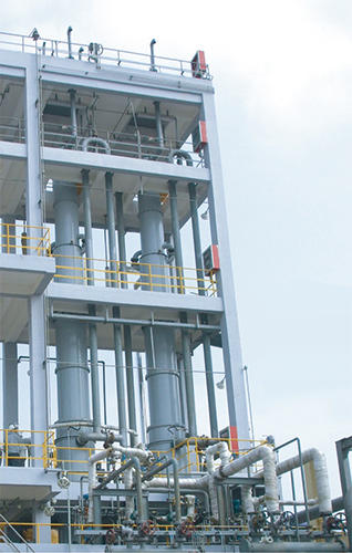 結構與特點: Cl2、H2合成、吸收、冷卻,副產(chǎn)尾氣再處理四個工藝程序合并在一臺設備內完成。 Cl2、H2純度、氣溫、壓力及水溫、壓力等因素在生產(chǎn)工藝要求范圍內,可直接獲得35%的工業(yè)純甚至試劑鹽酸。 技術特性: 本廠可根據(jù)用戶要求,生產(chǎn)Ф300-Ф1200等規(guī)格的本型合成爐,日產(chǎn)量鹽酸(折成33%濃度)3-200噸,提供安裝、調試及咨詢服務。